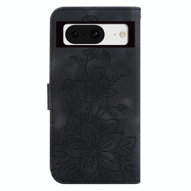 For Google Pixel 8 Lily Embossed Leather Phone Case(Black)