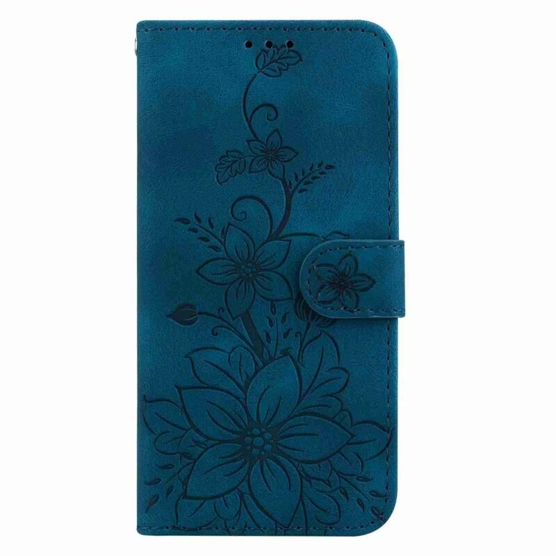 For Google Pixel 8 Lily Embossed Leather Phone Case(Dark Blue)