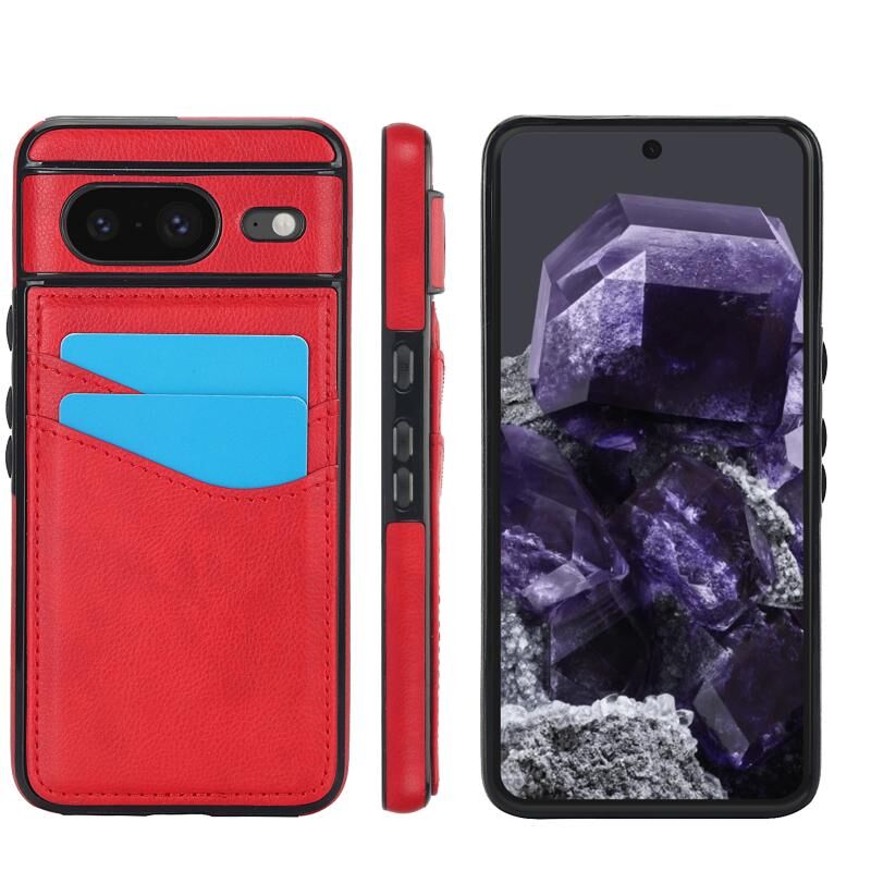 Για το Google Pixel 8 Litchi δέρμα δέρματος Litchi υποδοχές κάρτας υπόθεση τηλεφώνου (κόκκινο)