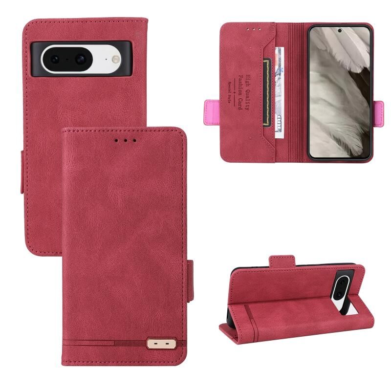 Για Google Pixel 8 Μαγνητικό κούμπωμα Δερμάτινη θήκη τηλεφώνου (κόκκινο)