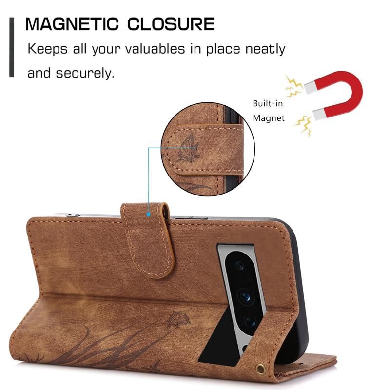 Θήκη τηλεφώνου Google Pixel 8 Orchid Butterfly Embossed Leather (Μαύρο)