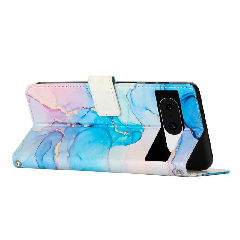 Θήκη τηλεφώνου από δέρμα με σχέδιο μαρμάρου ζωγραφισμένο για Google Pixel 8 (Ροζ Μωβ)