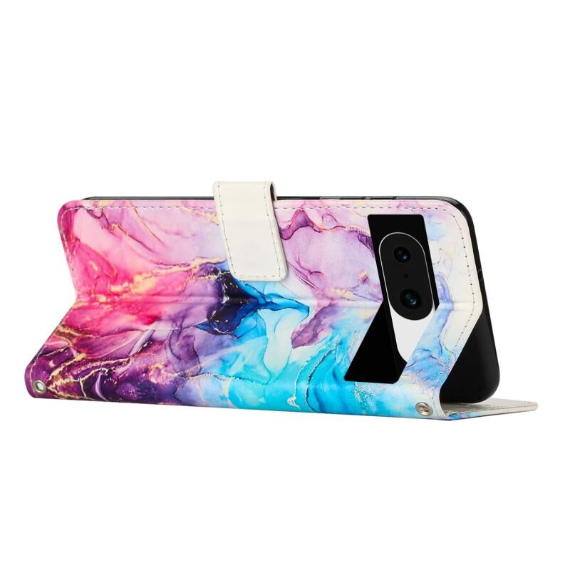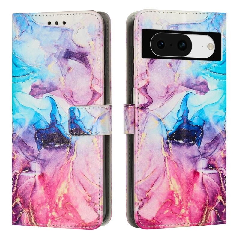 Θήκη τηλεφώνου από δέρμα με σχέδιο μαρμάρου ζωγραφισμένο για Google Pixel 8 (Ροζ Μωβ)