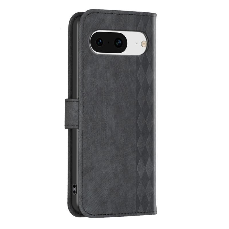 Για Google Pixel 8 καρό ανάγλυφη δερμάτινη θήκη τηλεφώνου (μαύρο)