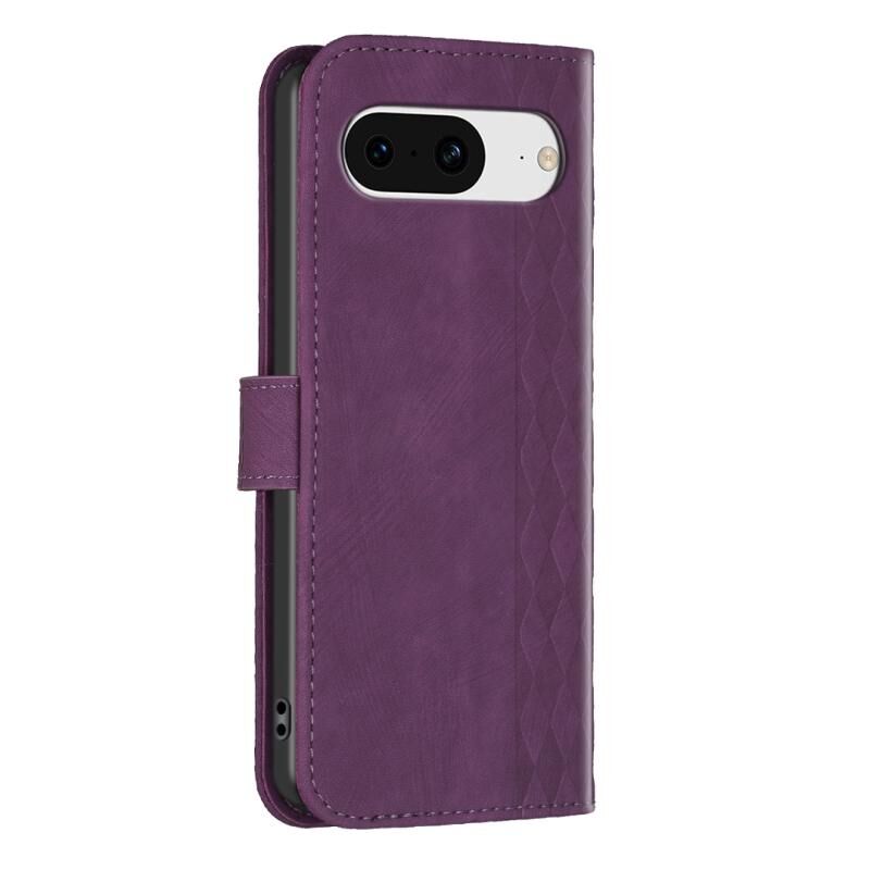 Για Google Pixel 8 καρό ανάγλυφη δερμάτινη θήκη τηλεφώνου (μωβ)
