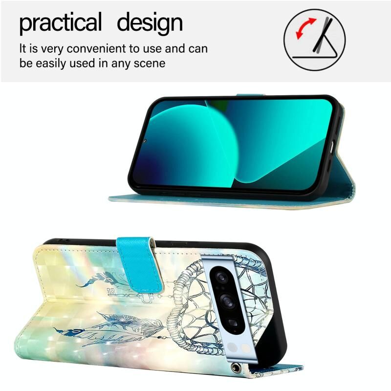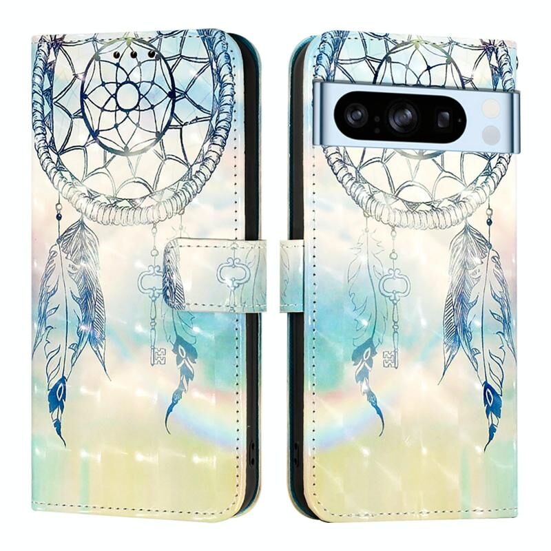 Θήκη τηλεφώνου από δέρμα με οριζόντιο άνοιγμα για Google Pixel 8 Pro, με τρισδιάστατη ζωγραφική (Όνειρα και Αιολικά Κουδούνια)