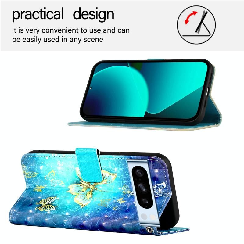 Θήκη τηλεφώνου από δέρμα με οριζόντια αναδίπλωση και τρισδιάστατη ζωγραφική για Google Pixel 8 Pro (Χρυσή Πεταλούδα)