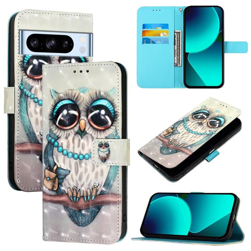 Θήκη τηλεφώνου από δέρμα με οριζόντια αναδίπλωση και τρισδιάστατη ζωγραφική για Google Pixel 8 Pro (Χρυσή Πεταλούδα)
