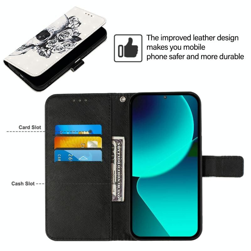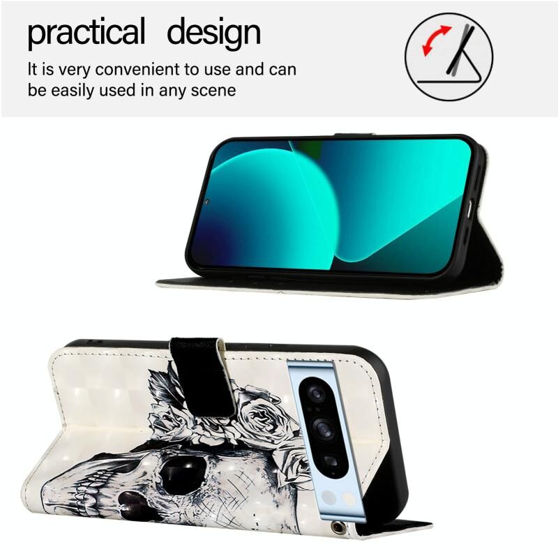 Θήκη τηλεφώνου από δέρμα με οριζόντια αναδίπλωση και τρισδιάστατη ζωγραφική για Google Pixel 8 Pro (Κρανίο)