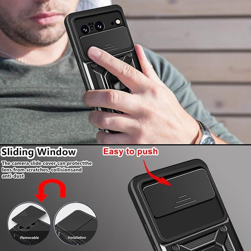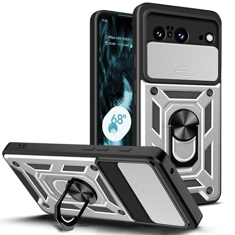 Θήκη τηλεφώνου για Google Pixel 8 Pro 5G, σχεδιασμός με ολισθαίνουσα κάλυψη κάμερας, υβριδικό υλικό TPU και PC (Ασημί)