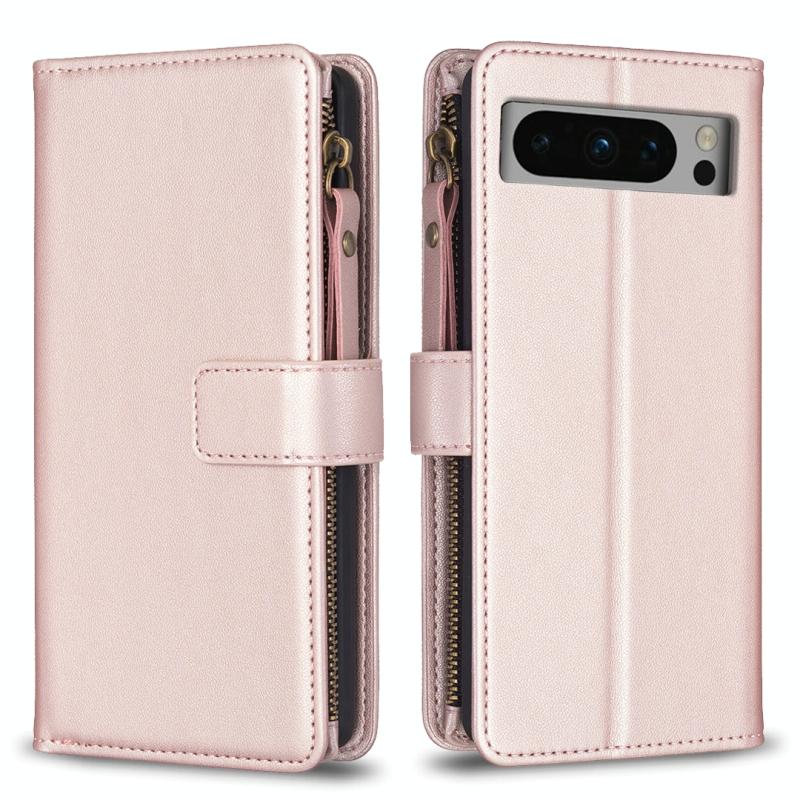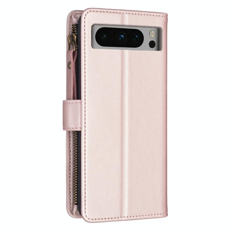 Θήκη τηλεφώνου Google Pixel 8 Pro, δερμάτινη, flip με φερμουάρ και 9 θήκες για κάρτες (ανοιχτό μωβ)