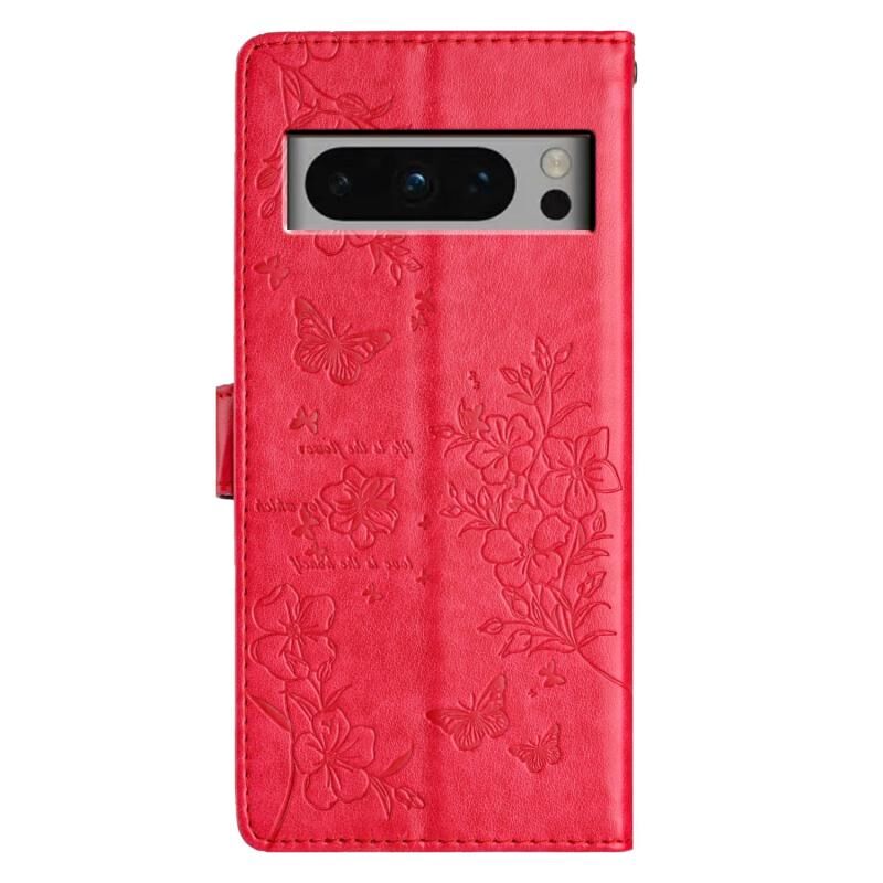 Θήκη τηλεφώνου από δέρμα για Google Pixel 8 Pro - Πεταλούδες και Λουλούδια (Χρυσό)