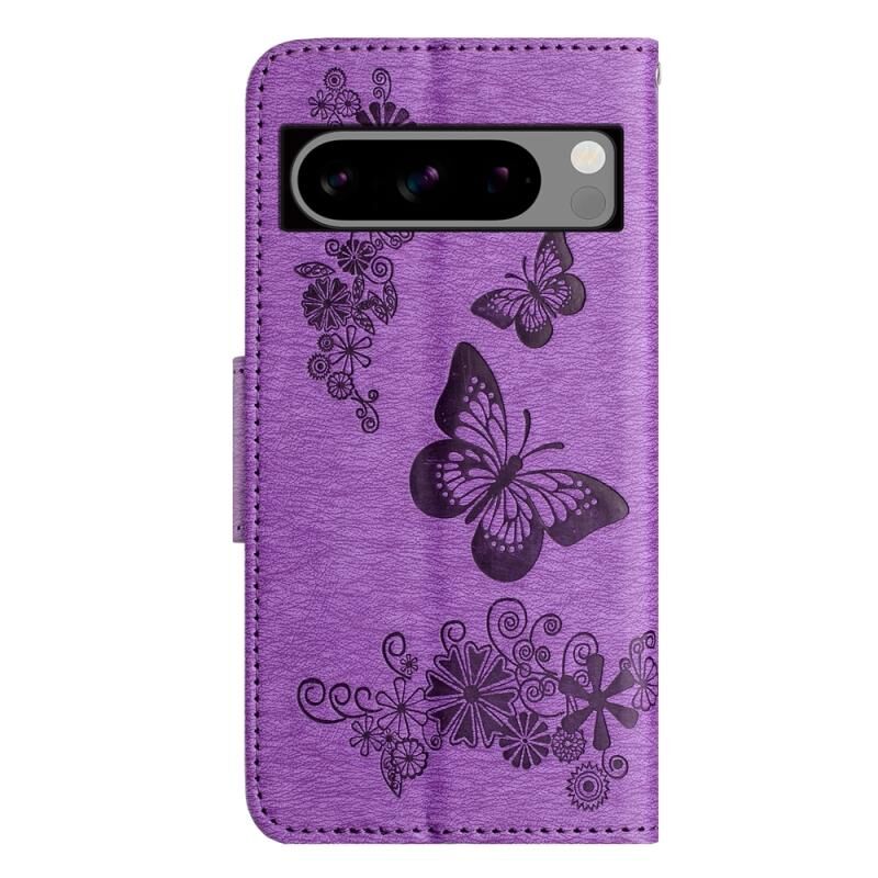 Θήκη τηλεφώνου από δέρμα με ανάγλυφο σχέδιο πεταλούδας για Google Pixel 8 Pro (Μωβ)