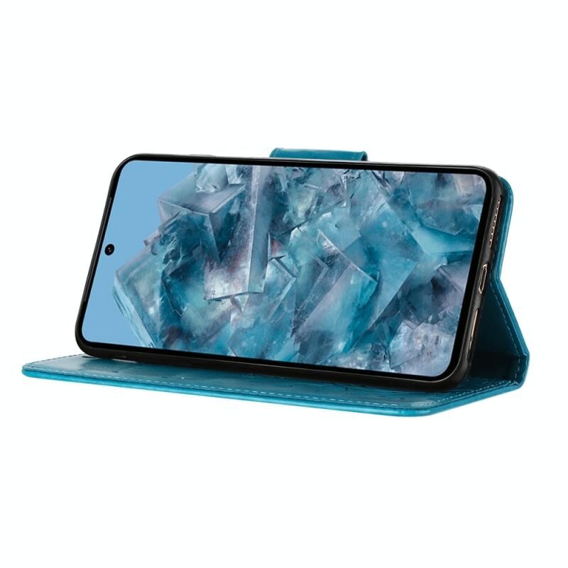 Για το Google Pixel 8 Pro πεταλούδα λουλούδι μοτίβο Flip δέρμα τηλέφωνο υπόθεση (μπλε)