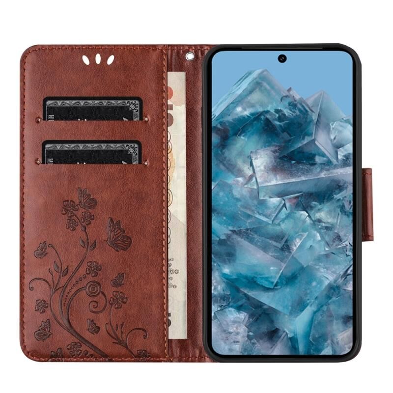 Για το Google Pixel 8 Pro πεταλούδα λουλούδι μοτίβο Flip δέρμα τηλέφωνο υπόθεση (καφέ)