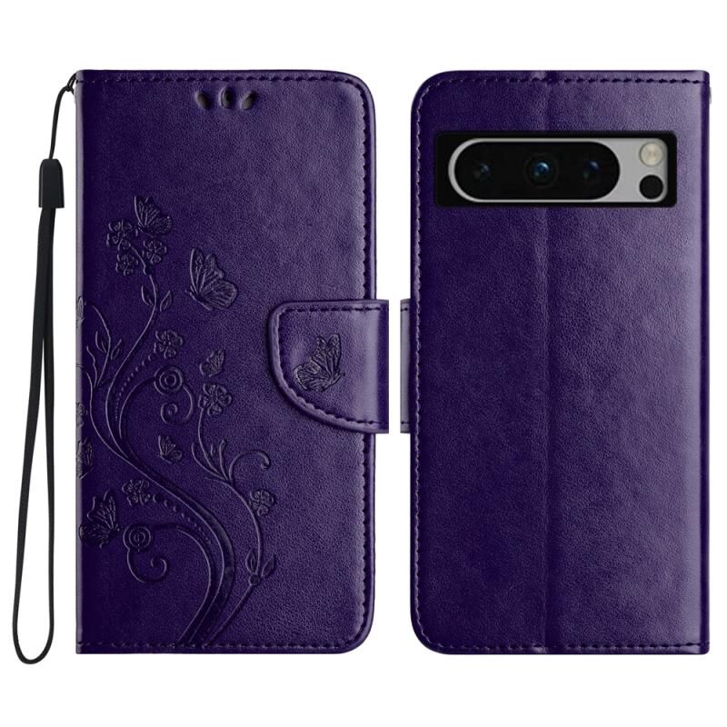 Για το Google Pixel 8 Pro πεταλούδα λουλούδι μοτίβο Flip δέρμα τηλέφωνο υπόθεση (σκούρο μωβ)
