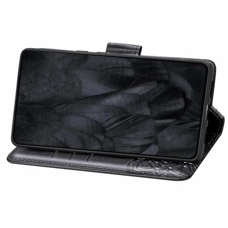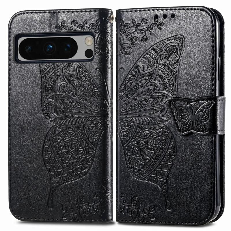 Θήκη τηλεφώνου από δέρμα με ανάγλυφο σχέδιο πεταλούδας και λουλουδιών για Google Pixel 8 Pro (Μαύρο)