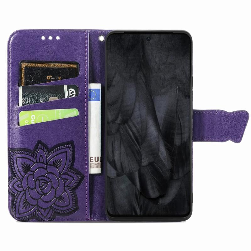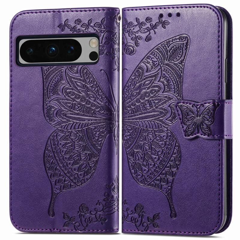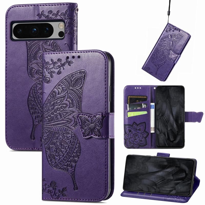 Θήκη τηλεφώνου από δέρμα με ανάγλυφο σχέδιο πεταλούδας και λουλουδιών για Google Pixel 8 Pro (Μπλε)