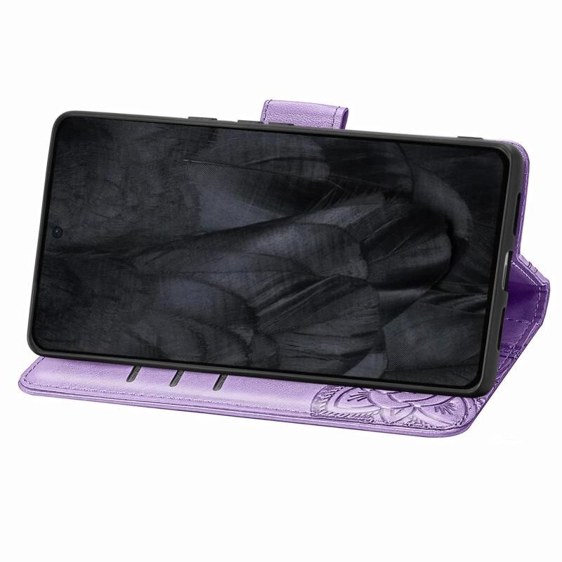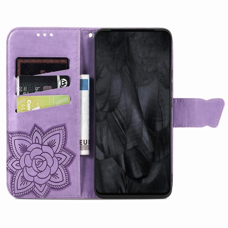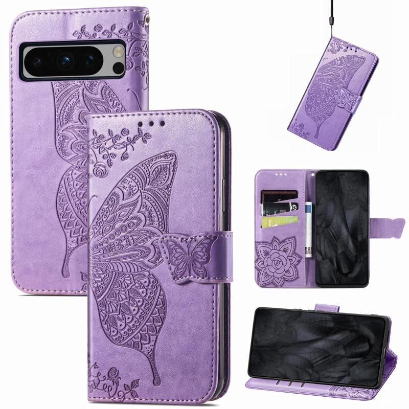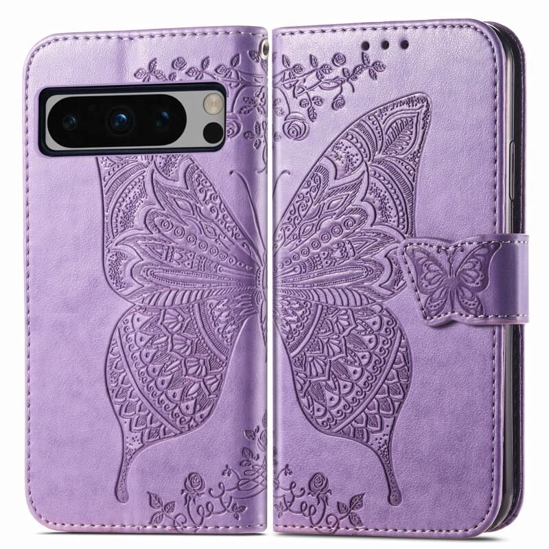 Θήκη τηλεφώνου από δέρμα με ανάγλυφο σχέδιο πεταλούδας και λουλουδιών για Google Pixel 8 Pro (Μπλε)