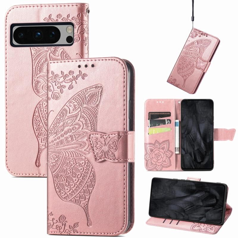 Θήκη τηλεφώνου από δέρμα με ανάγλυφο σχέδιο πεταλούδας και λουλουδιών για Google Pixel 8 Pro (Μπλε)