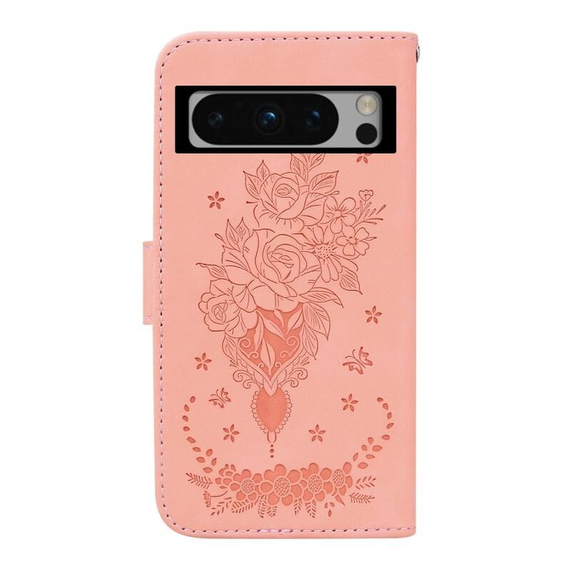 Για το Google Pixel 8 Pro Πεταλούδα Rose ανάγλυφη δερμάτινη θήκη τηλεφώνου (ροζ)