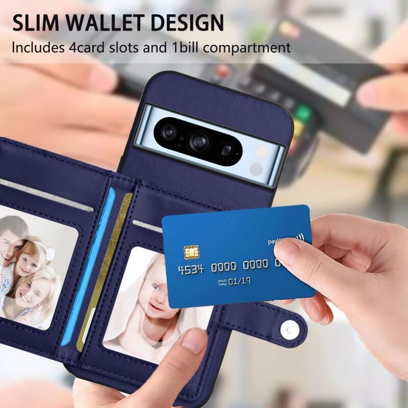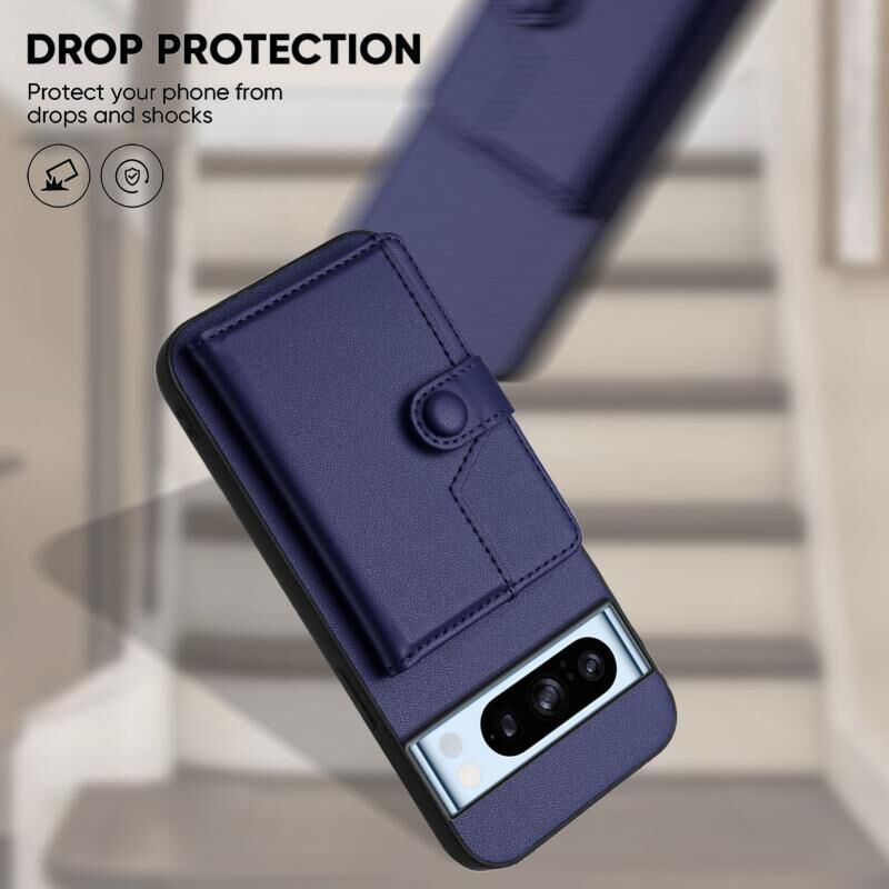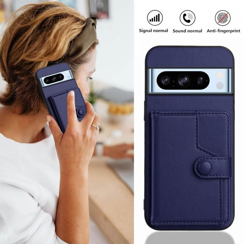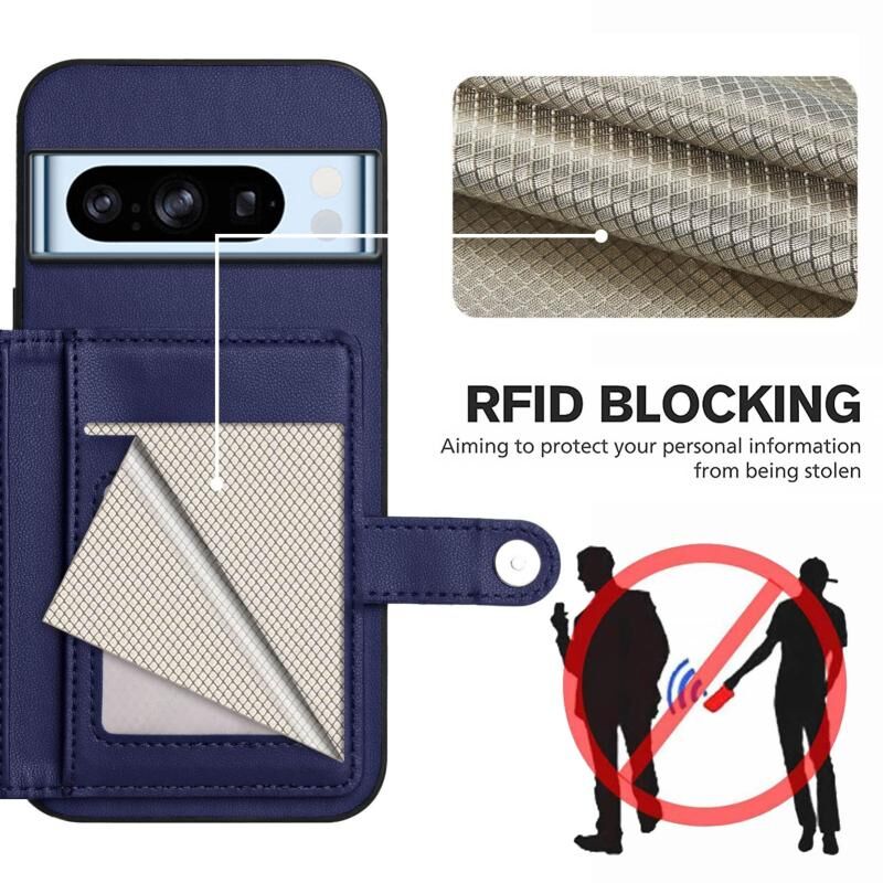 For Google Pixel 8 Pro Button Card Bag RFID Anti-theft Phone Case(Blue)