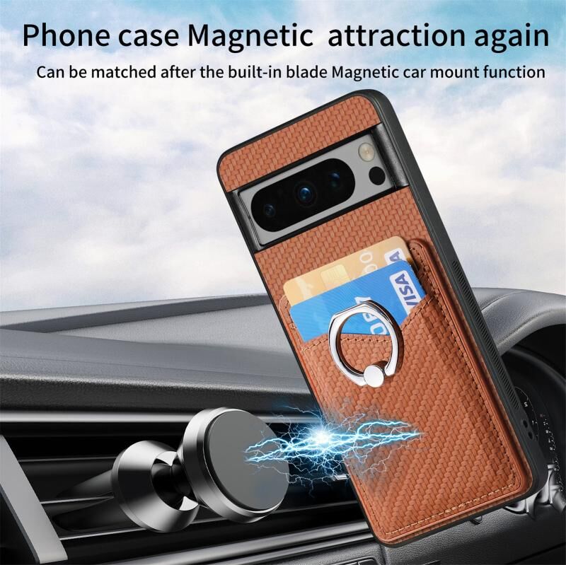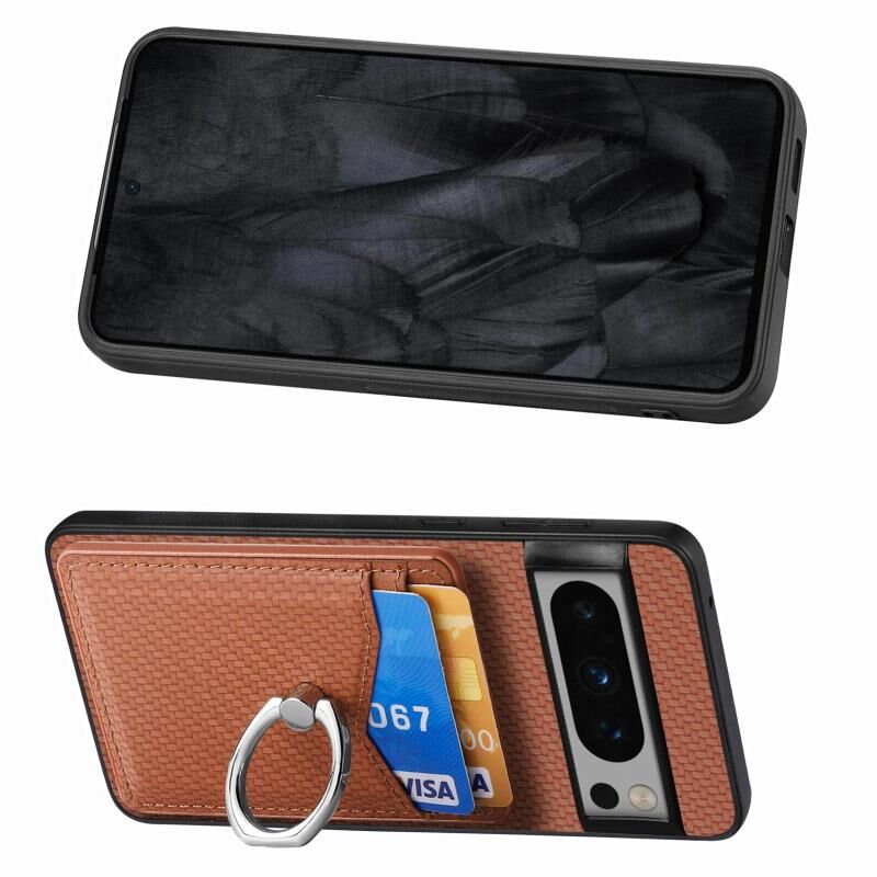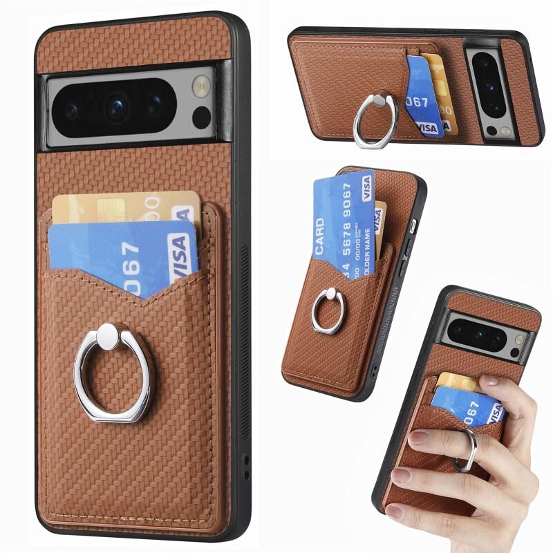 Για το Google Pixel 8 Pro Carbon Fiber κάρτα πορτοφόλι δαχτυλίδι κάτοχος θήκη τηλεφώνου (καφέ)