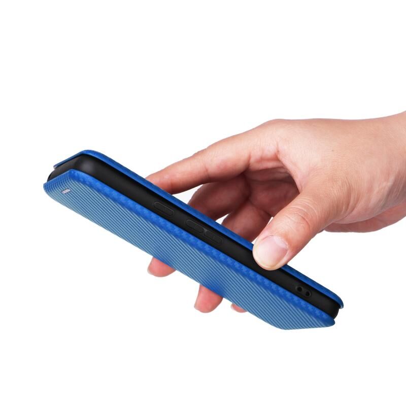 Για το Google Pixel 8 Pro Carbon Fiber Texture Flip δέρμα τηλέφωνο υπόθεση (μπλε)