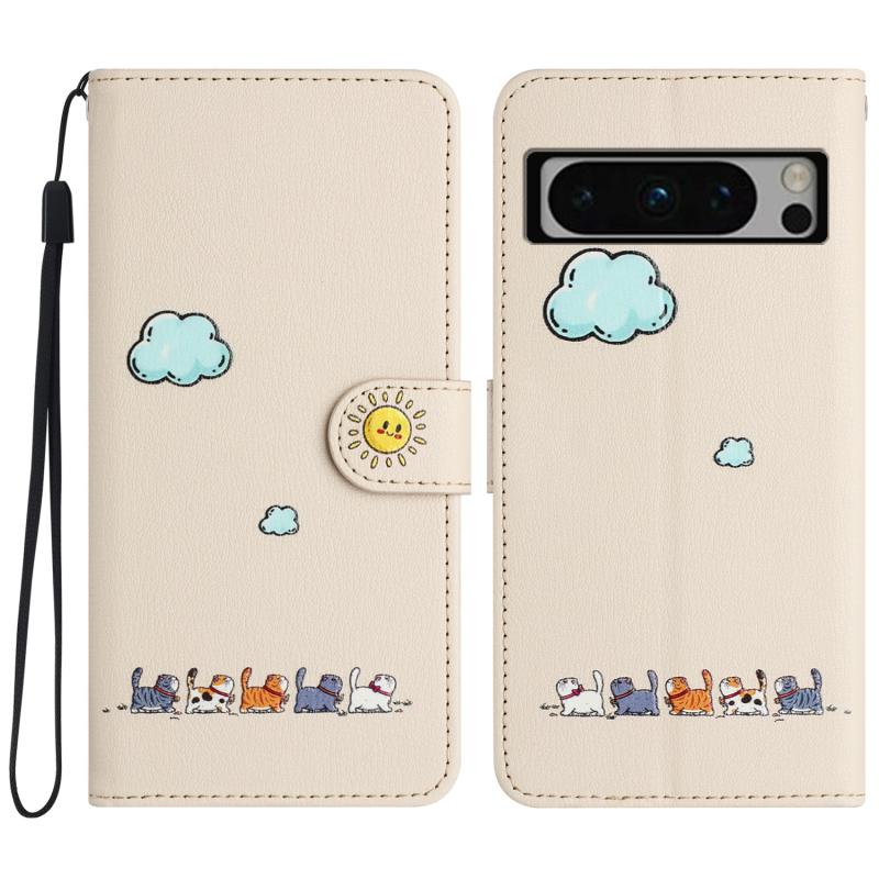 For Google Pixel 8 Pro Cartoon Cats Leather Phone Case(Beige White)