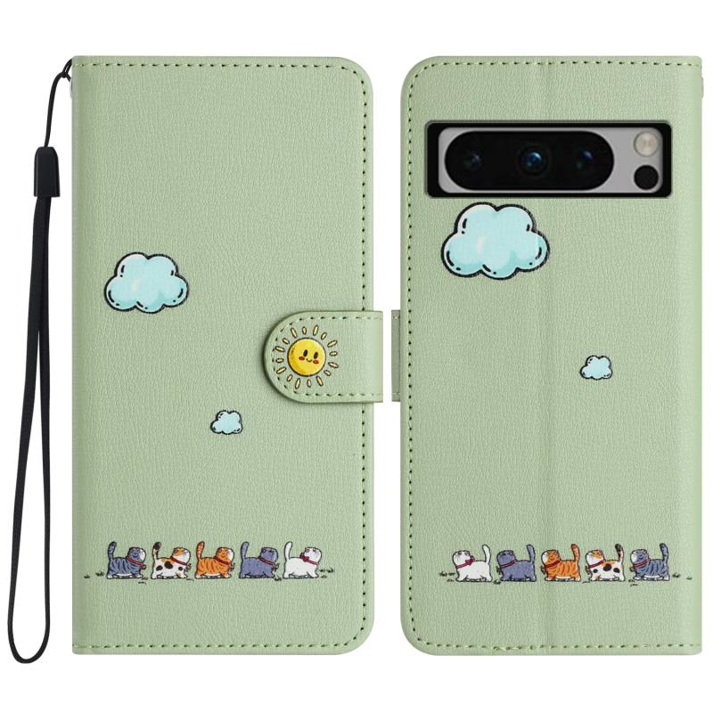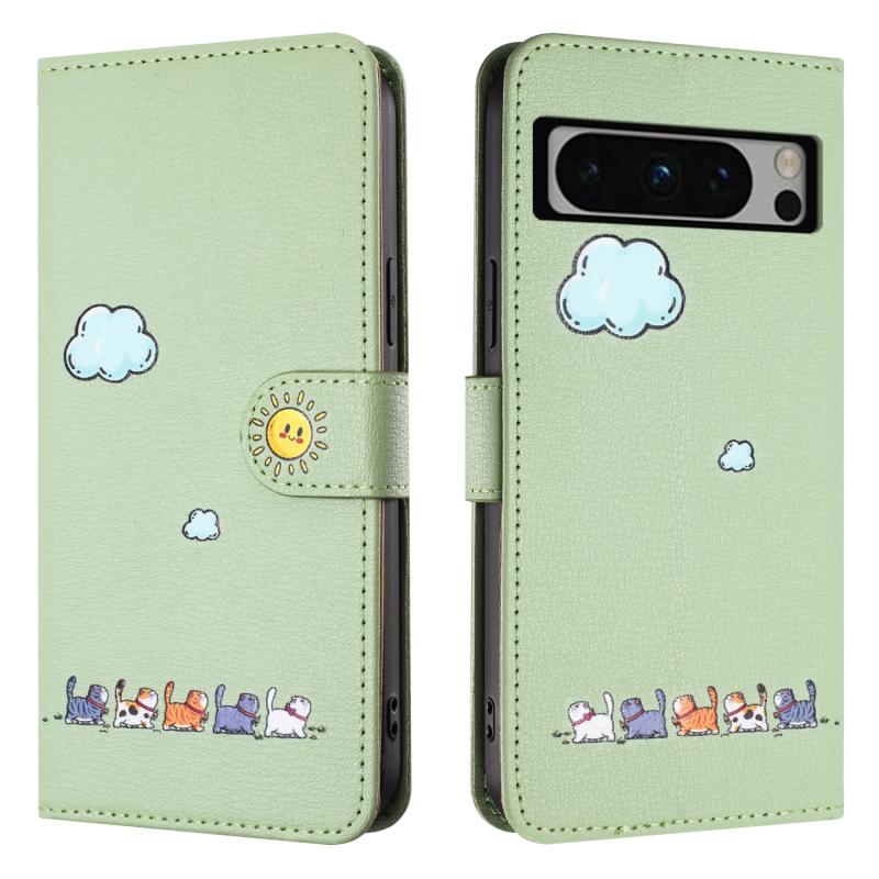 For Google Pixel 8 Pro Cartoon Cats Leather Phone Case(Green)