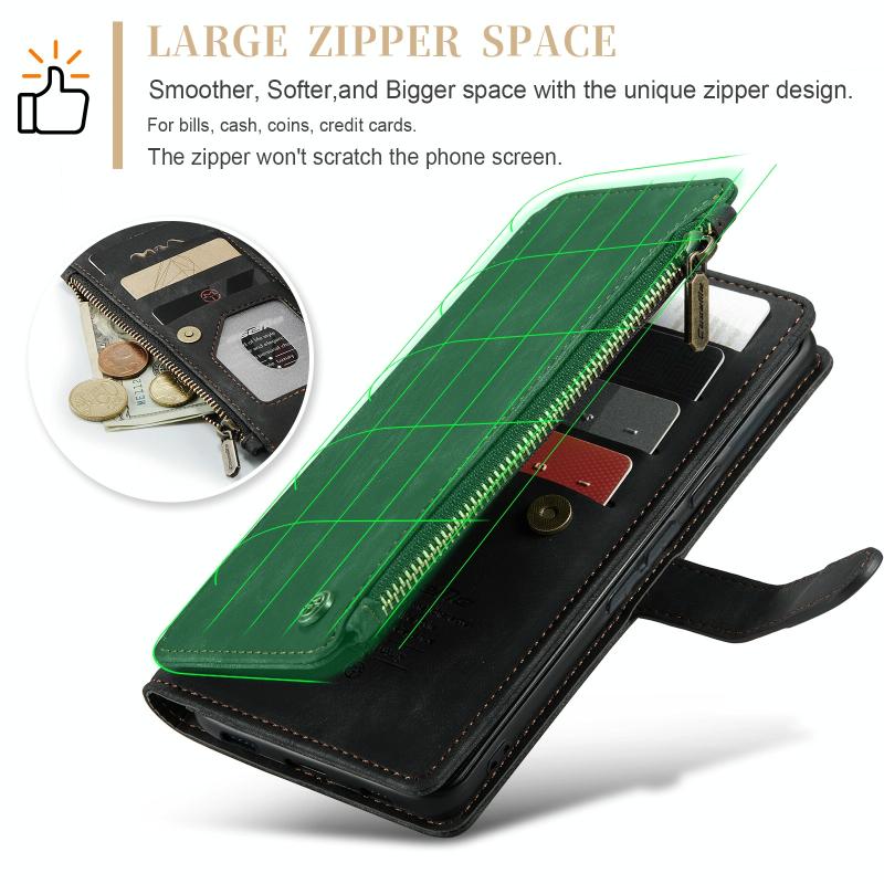 6. 10 θήκες για κάρτες + 1 θέση πορτοφολιού + 1 τσέπη με φερμουάρ (πραγματικά με βάση την εικόνα)