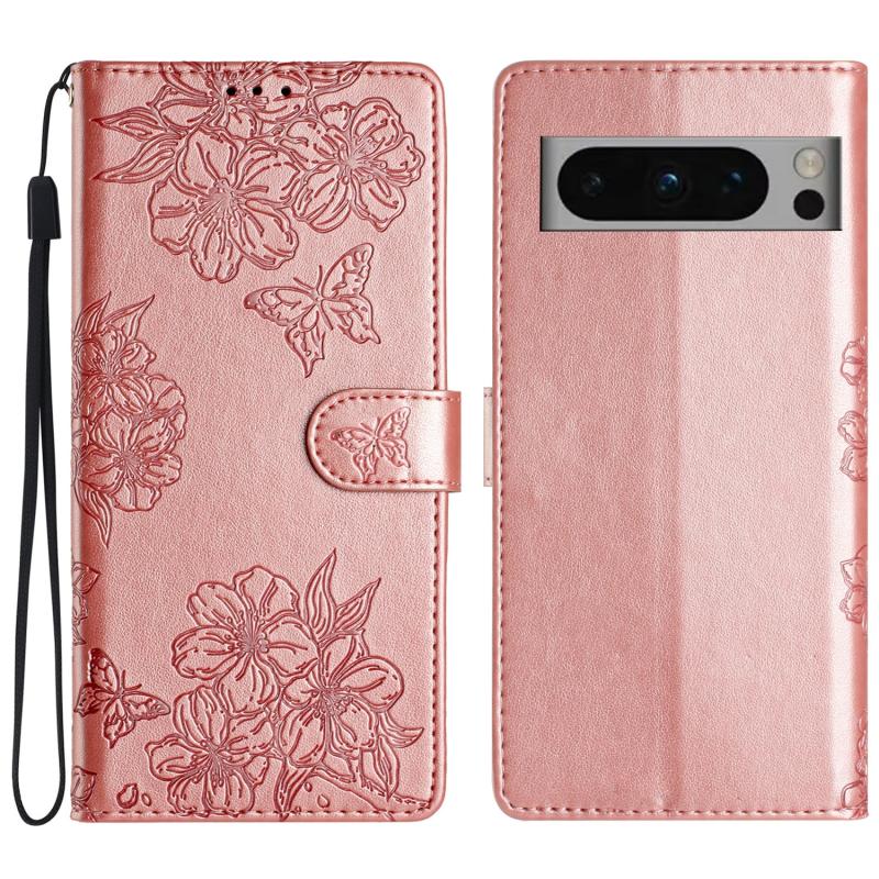 For Google Pixel 8 Pro Cherry Blossom Butterfly Skin Feel Embossed PU Phone Case(Rose Gold)