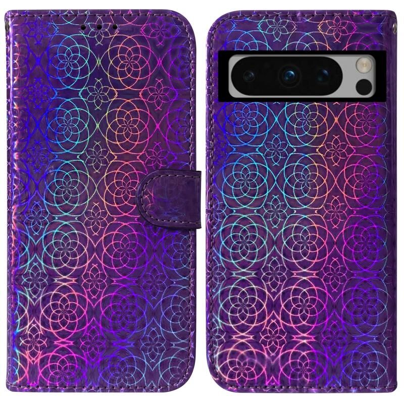 Για το Google Pixel 8 Pro Πολύχρωμο μαγνητική πόρπη δερμάτινη θήκη τηλεφώνου (μωβ)