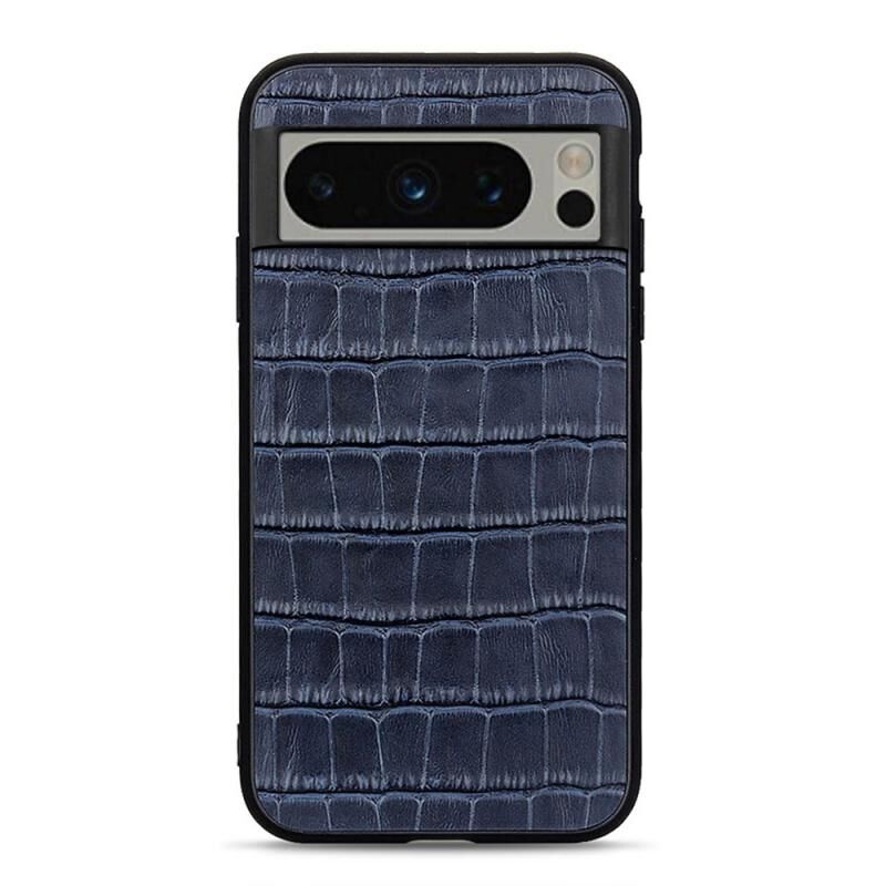 Θήκη τηλεφώνου από γνήσιο δέρμα με υφή κροκόδειλου για Google Pixel 8 Pro (Μπλε)