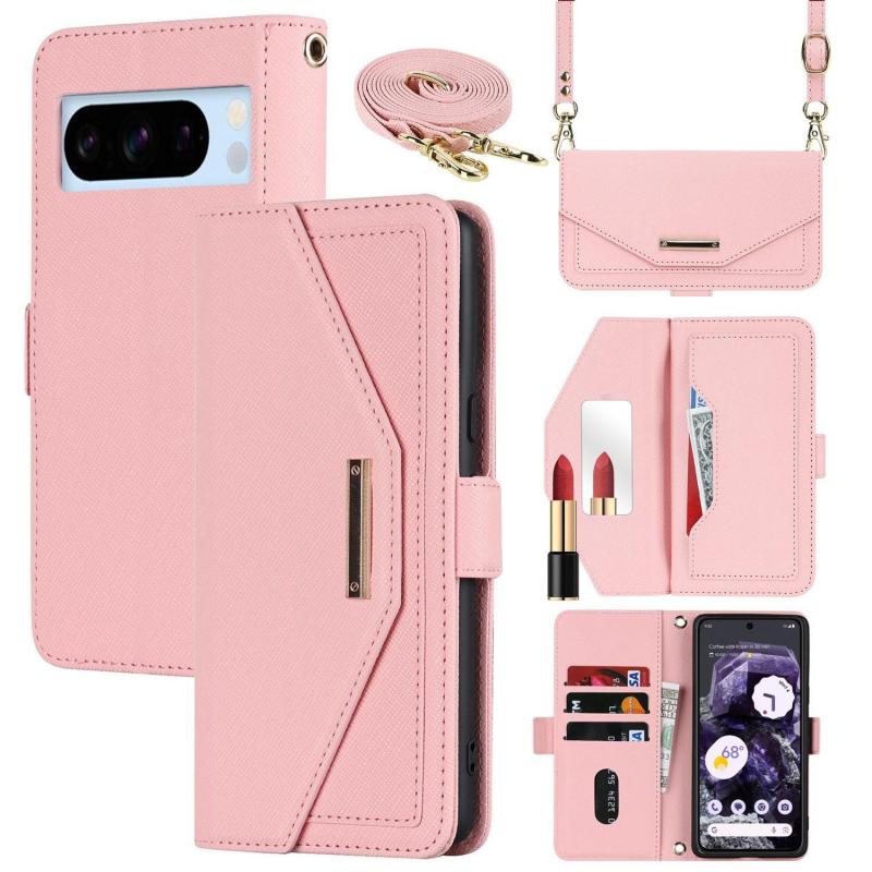For Google Pixel 8 Pro Cross Texture Crossbody Lanyard Leather Phone Case(Pink)