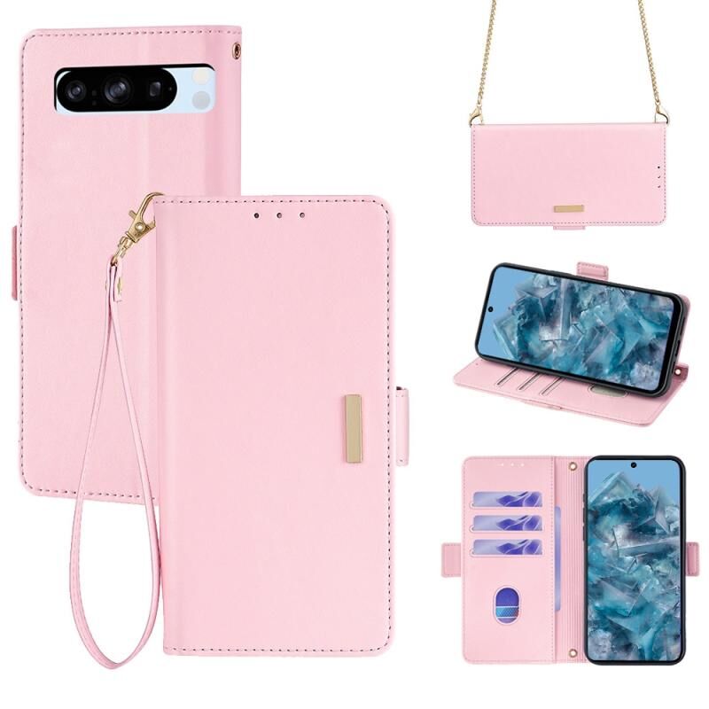 Για το Google Pixel 8 Pro Crossbody Αλυσίδα δερμάτινη θήκη τηλεφώνου (ροζ)