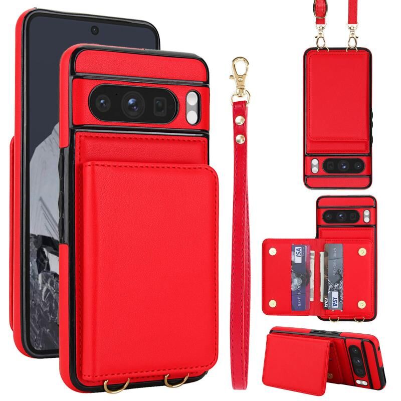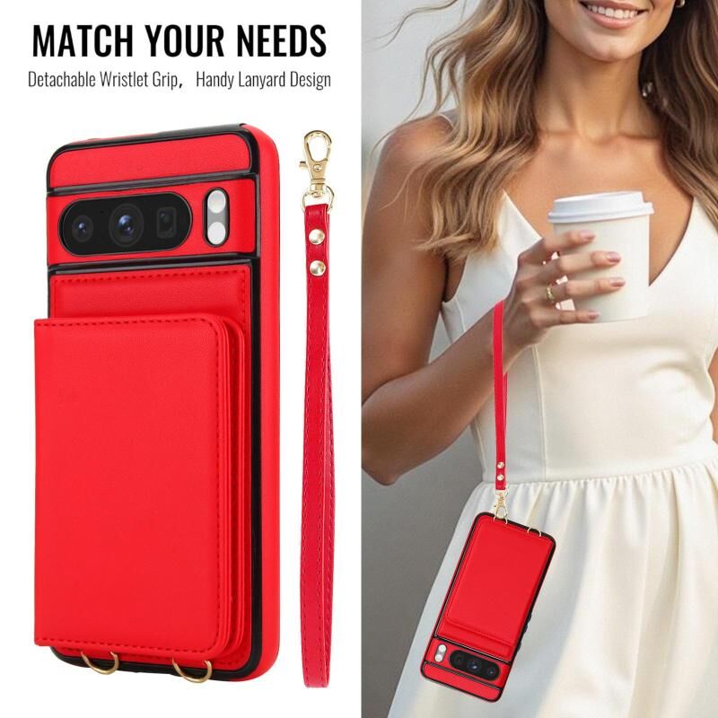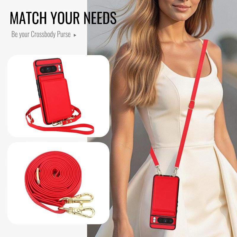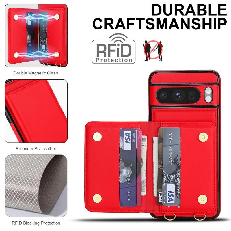 For Google Pixel 8 Pro Crossbody Dual-buckle Wallet RFID Back Leather Phone Case(Red)