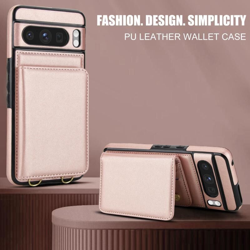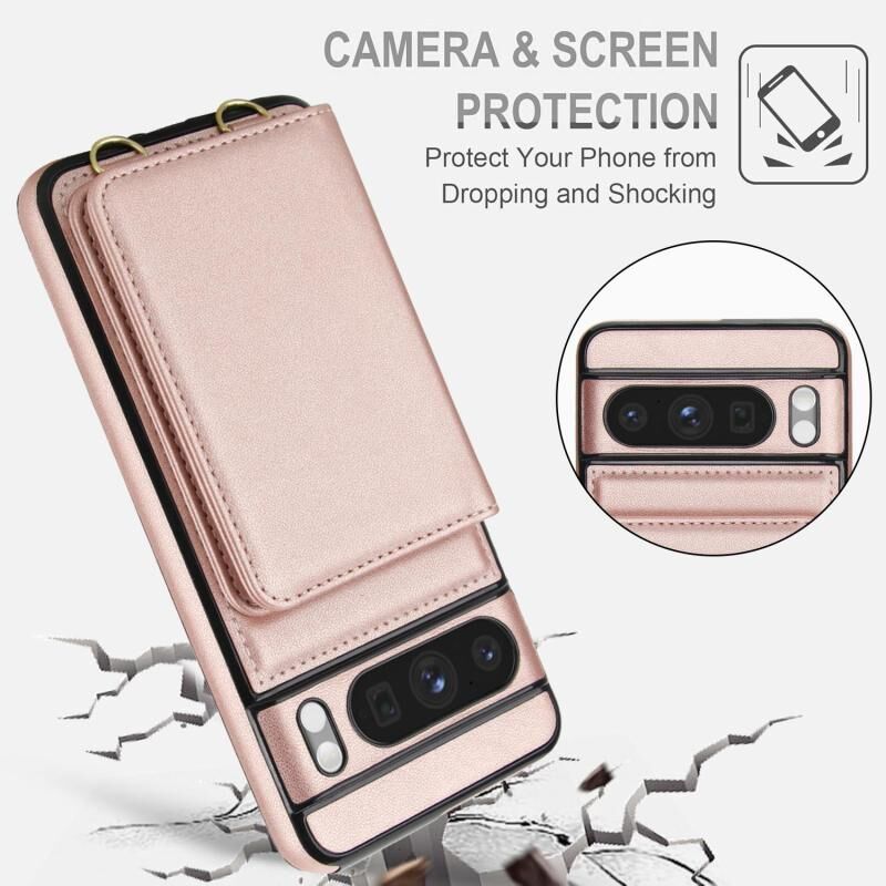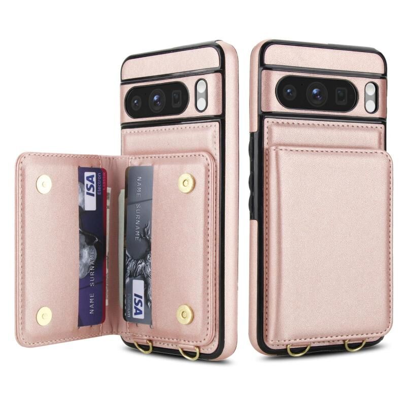 For Google Pixel 8 Pro Crossbody Dual-buckle Wallet RFID Back Leather Phone Case(Rose Gold)