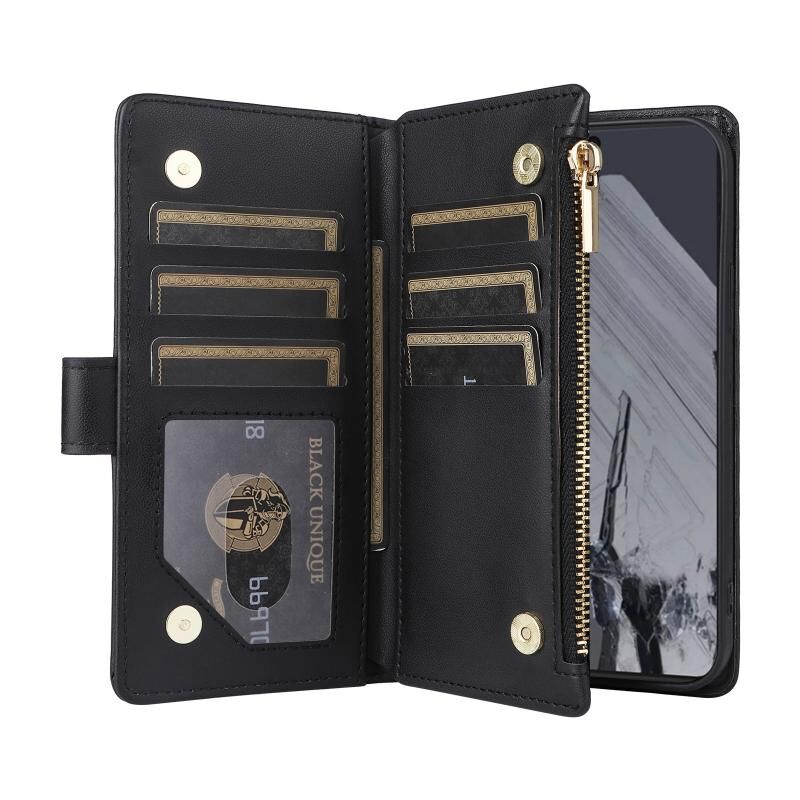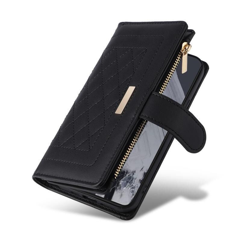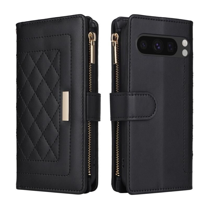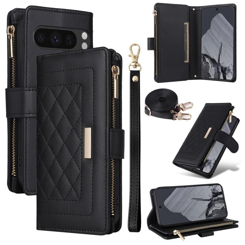 Για το Google Pixel 8 Pro Crossbody φερμουάρ πορτοφόλι Rhombus δερμάτινη θήκη τηλεφώνου (μαύρο)