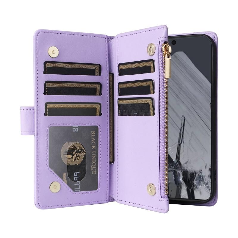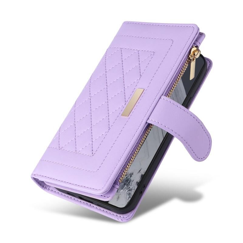 Για το Google Pixel 8 Pro Crossbody φερμουάρ πορτοφόλι Rhombus δερμάτινη θήκη τηλεφώνου (μωβ)