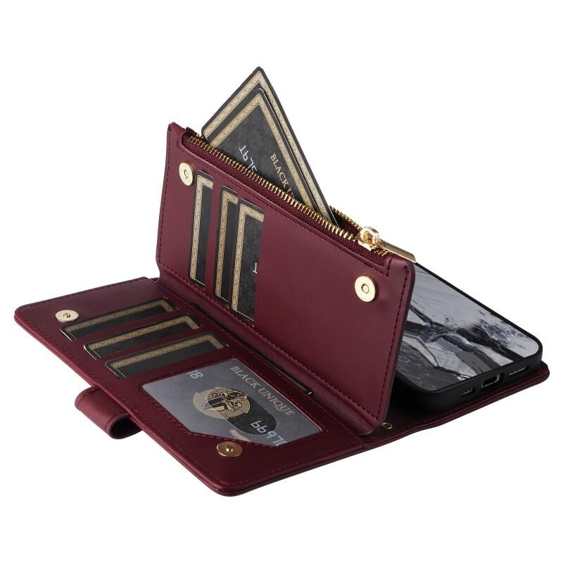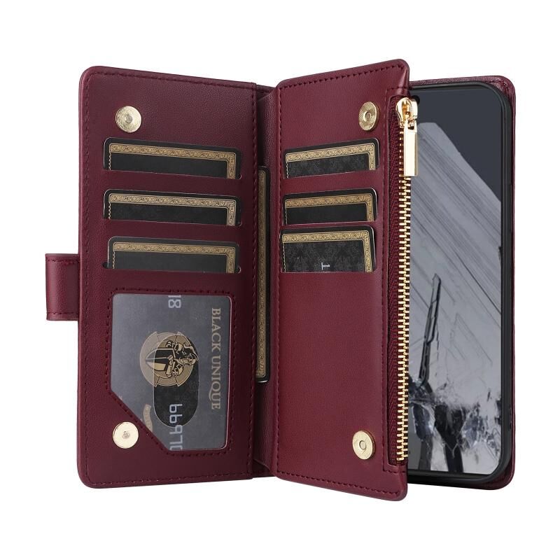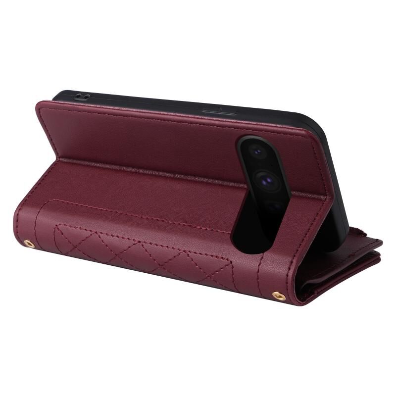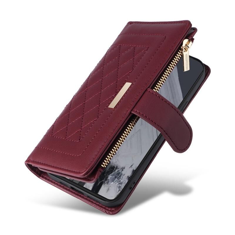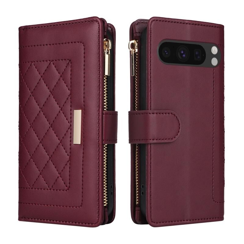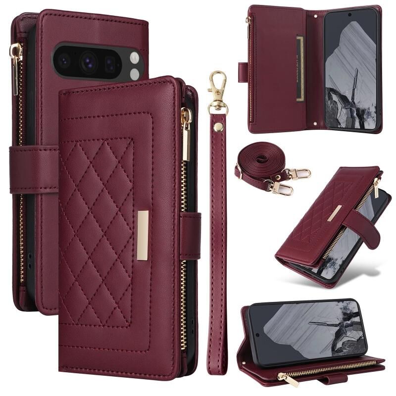 Για το Google Pixel 8 Pro Crossbody φερμουάρ πορτοφόλι Rhombus δερμάτινη θήκη τηλεφώνου (κόκκινο κρασί)