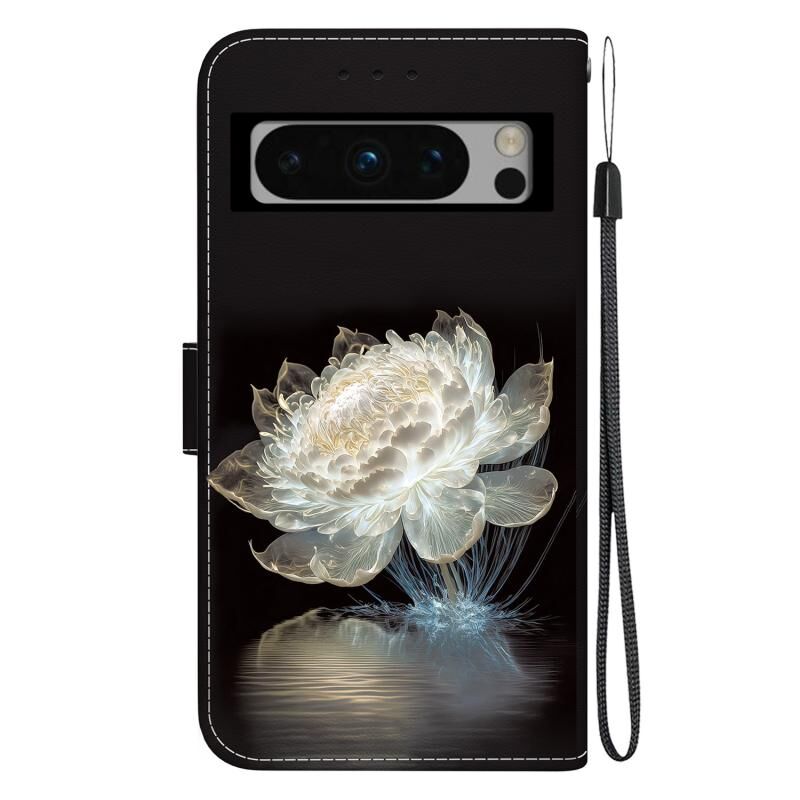 For Google Pixel 8 Pro Crystal Texture Colored Drawing Leather Phone Case(Crystal Peony)