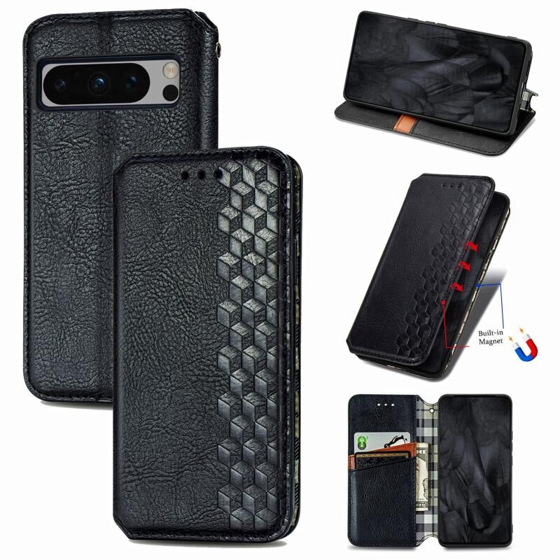For Google Pixel 8 Pro Cubic Grid Pressed Magnetic Leather Phone Case(Black)