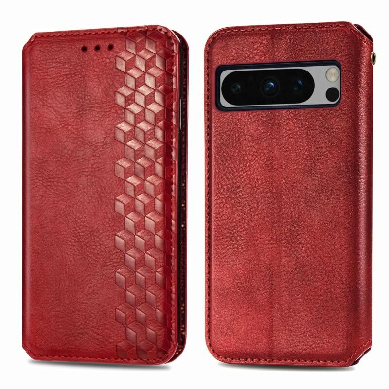 For Google Pixel 8 Pro Cubic Grid Pressed Magnetic Leather Phone Case(Red)