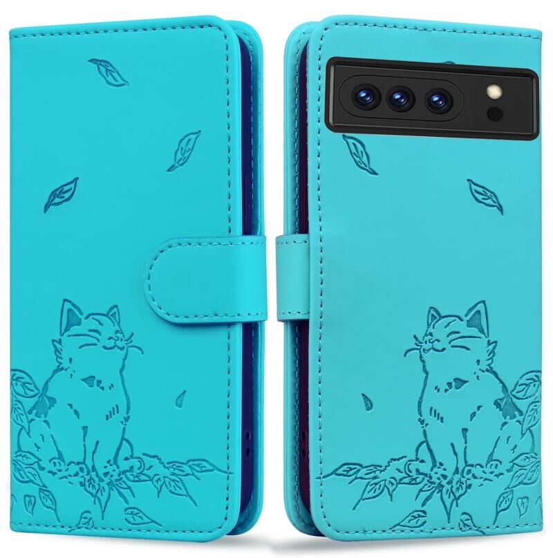 Θήκη τηλεφώνου από δέρμα με ανάγλυφο χαριτωμένο γατάκι για Google Pixel 8 Pro (Πράσινο)