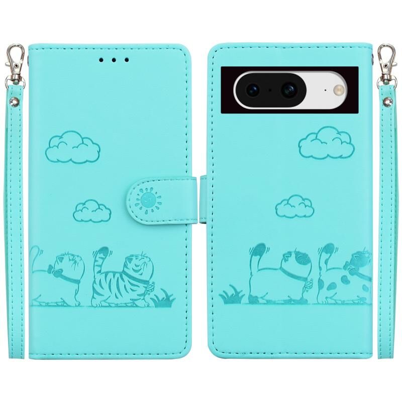 Θήκη τηλεφώνου από δέρμα με χαριτωμένες γάτες για Google Pixel 8 Pro (Χρυσό ροζ) με προστασία RFID