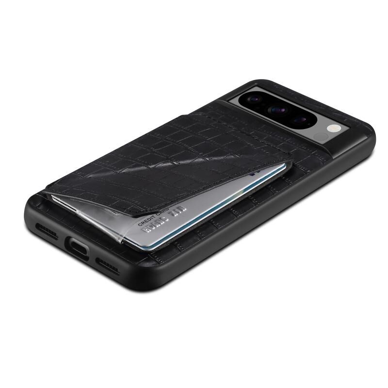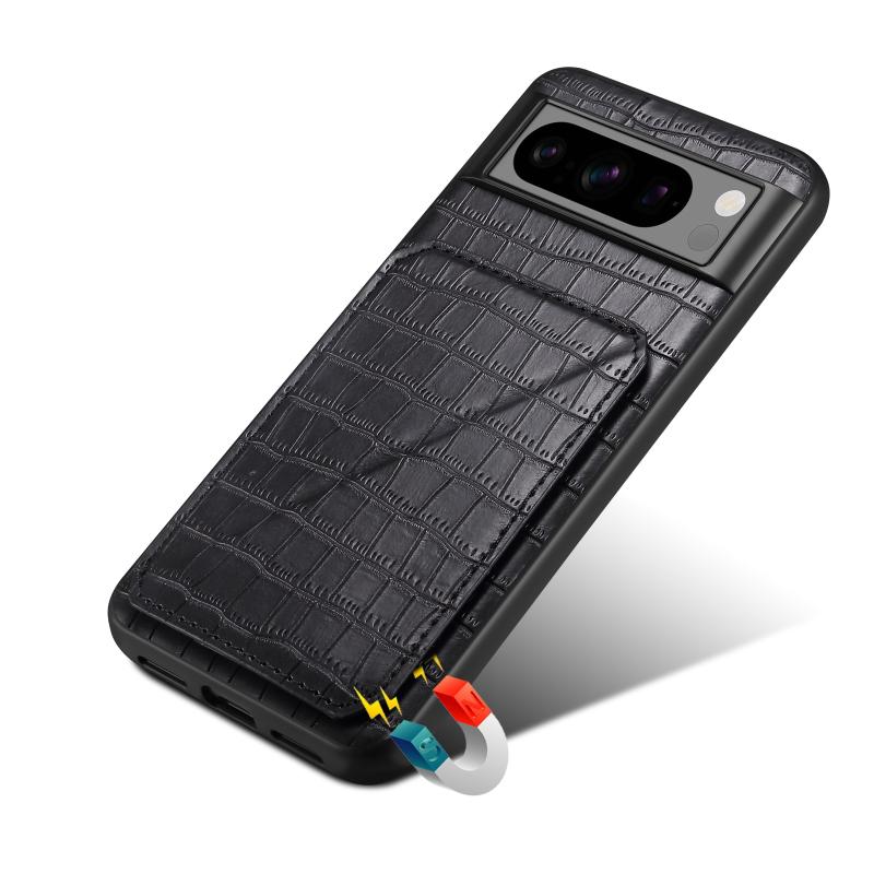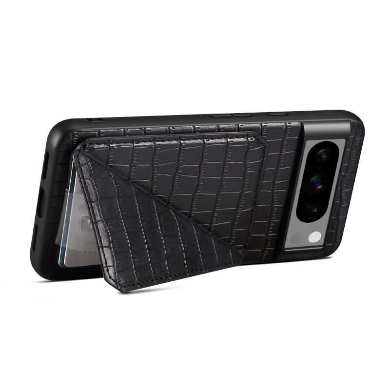 For Google Pixel 8 Pro Denior Crocodile Texture Holder Electroplating Phone Case(Black) (Denior)
