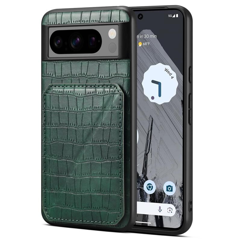 For Google Pixel 8 Pro Denior Crocodile Texture Holder Electroplating Phone Case(Green) (Denior)