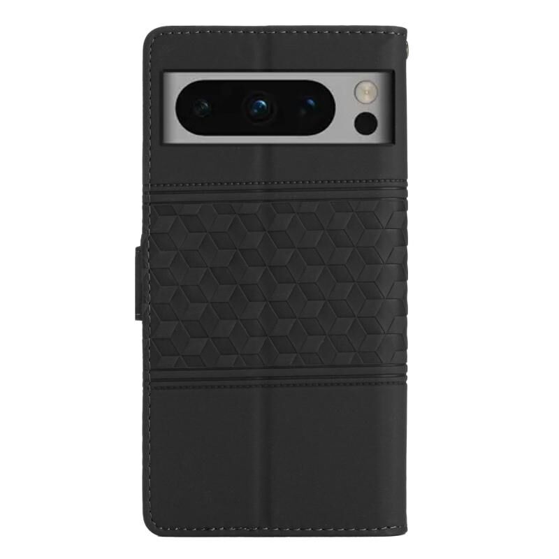 Για το Google Pixel 8 Pro Diamond ανάγλυφο δέρμα αίσθηση δέρμα υπόθεση τηλεφώνου με κορδόνι (μαύρο)