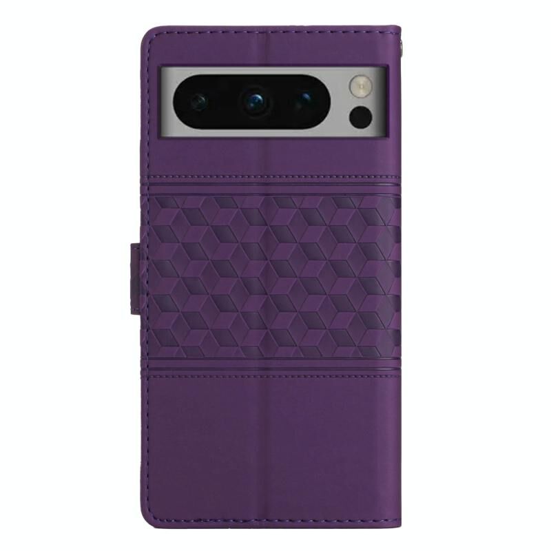 Για το Google Pixel 8 Pro Diamond ανάγλυφο δέρμα αίσθηση δερμάτινη θήκη τηλεφώνου με κορδόνι (μωβ)